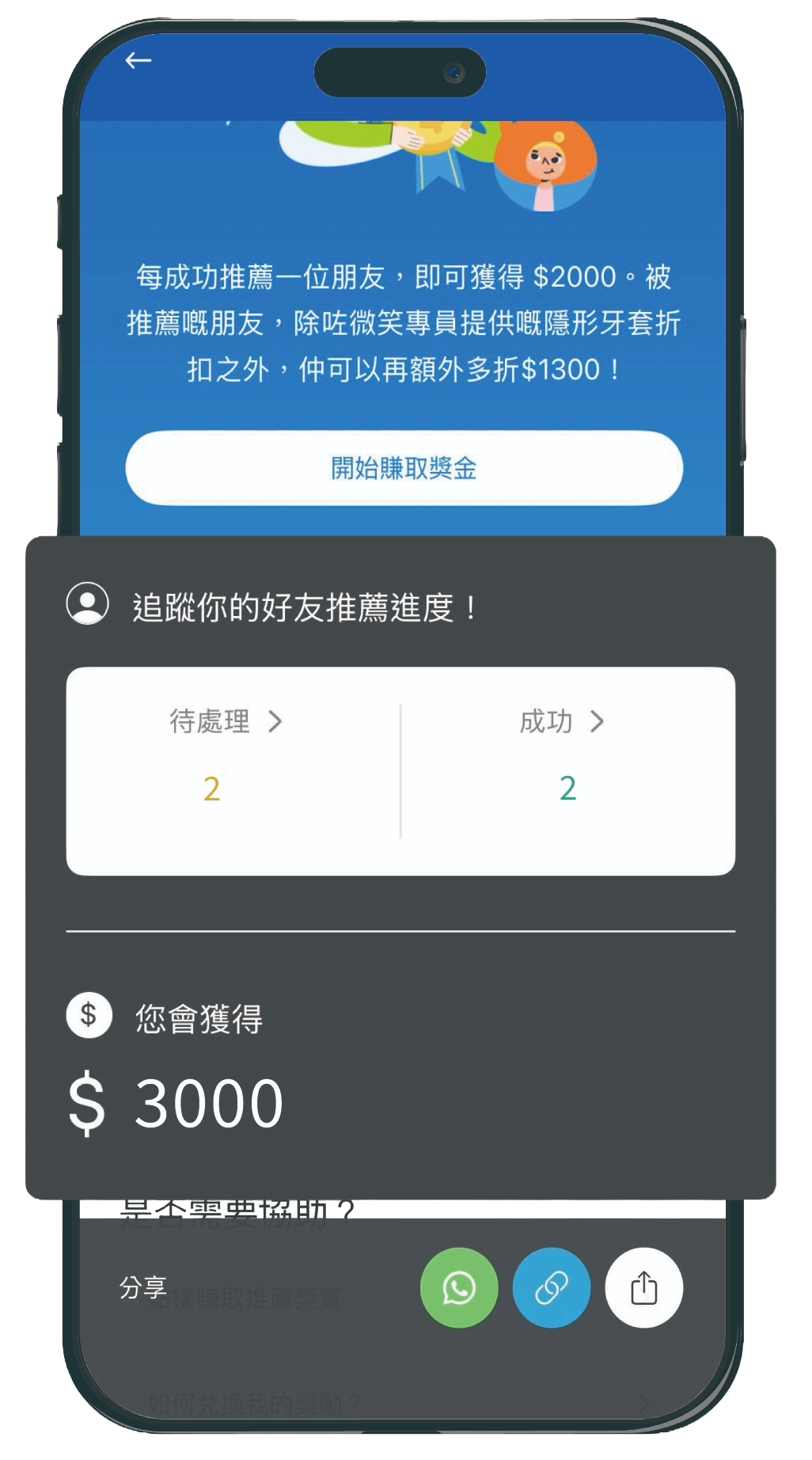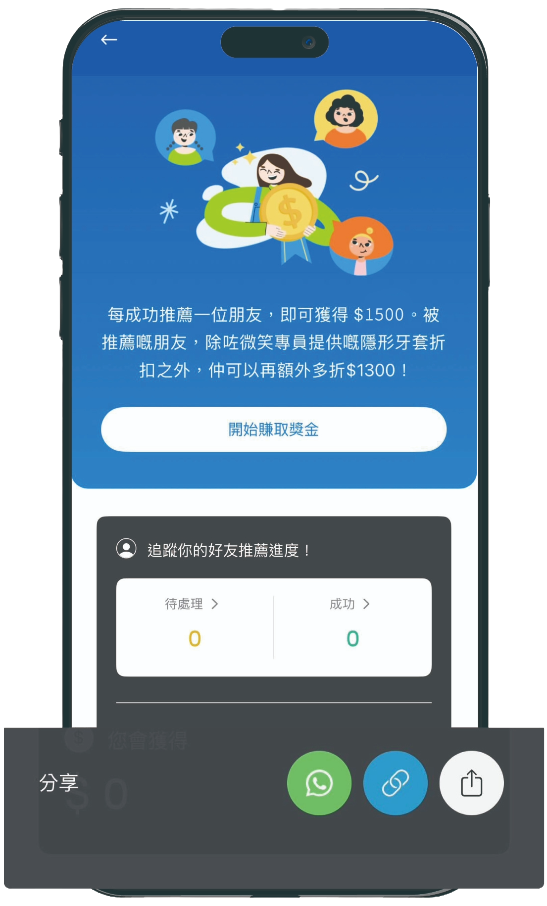 對!你的好友需先經你的專屬連結完成免費線上箍牙評估。一經確認適合並開始Zenyum 隱形牙套療程,即可享HK$1300 折扣優惠。同時你也可獲得獎金!當你分享愈多,獲得愈多。有好事齊齊享!
